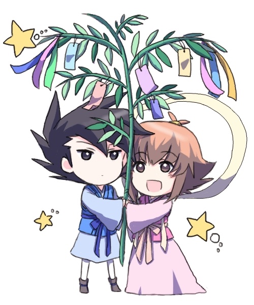 短冊に願い事書く万十か、織姫彦星コスの万十か迷った結果