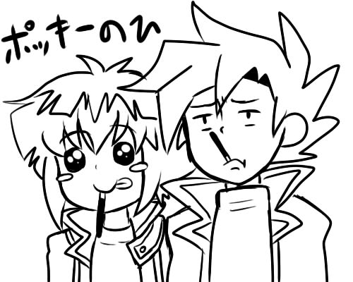 ポッキーゲームしてる万十はベタすぎかなーと思ってただ単にそれぞれポッキーくわえてるだけの絵になり果てました